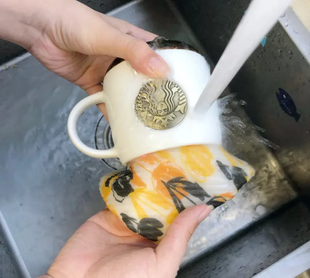 杯底的陈年咖啡渍也是一擦就没,有了它我家洗洁精完全派不上用场。