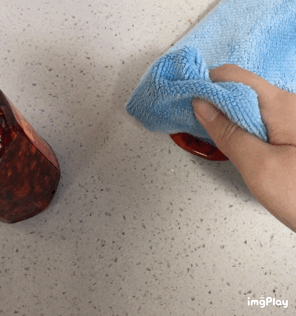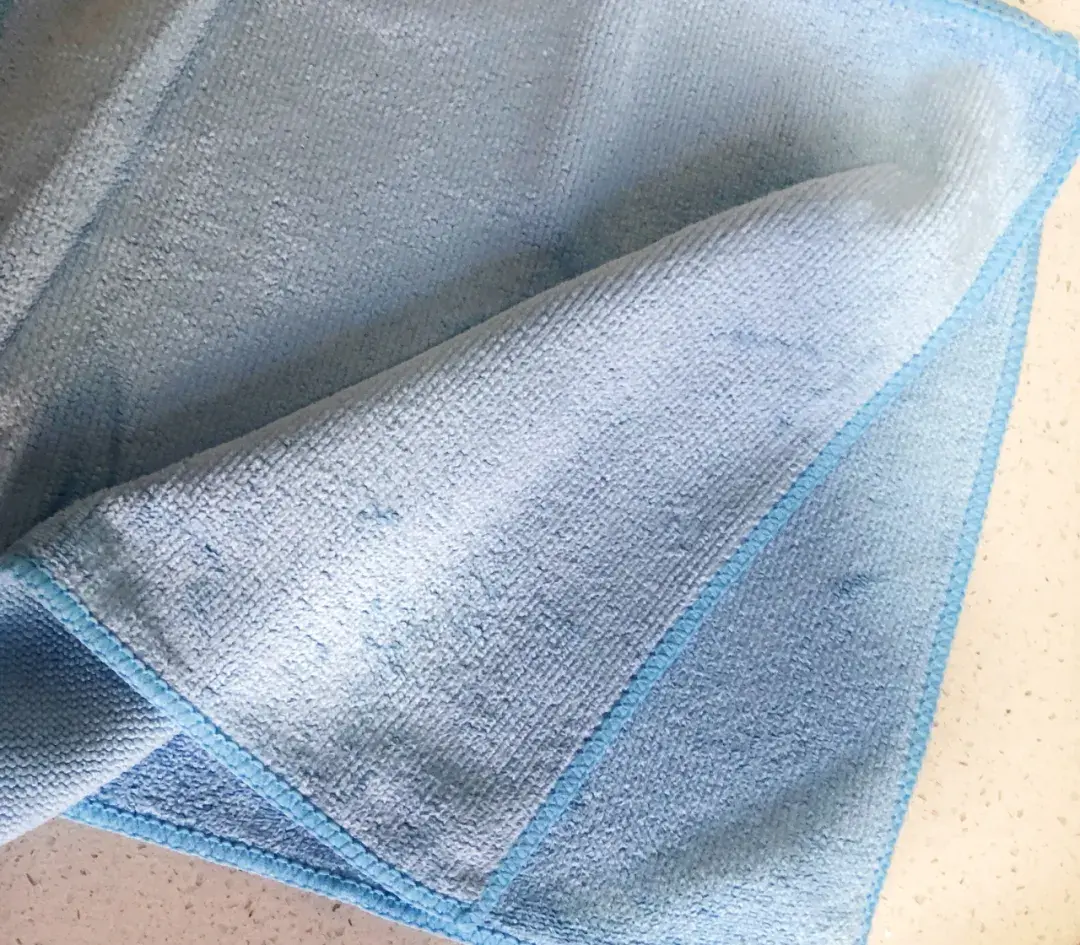 擦过辣椒油的超纤布,没加一滴洗洁精只用了清水就洗干净了: